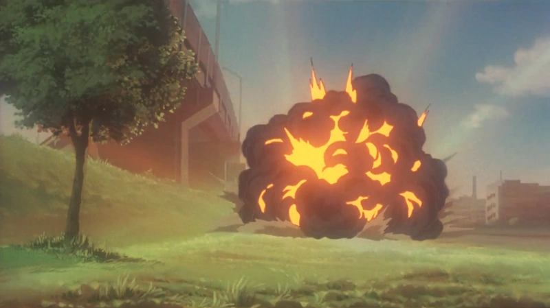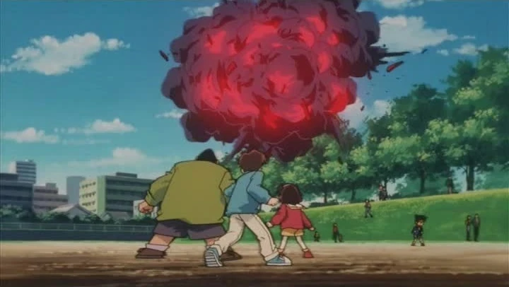 When Conan searches for the second bomb, he only manages to bring it to a deserted place before it blows up, which sends Conan flying into a tree. He wakes up in the hospital. They get another notice that there are more bombs planted on a train track. They also found out that one case related to Shinichi might connect to this mass-bombing event.